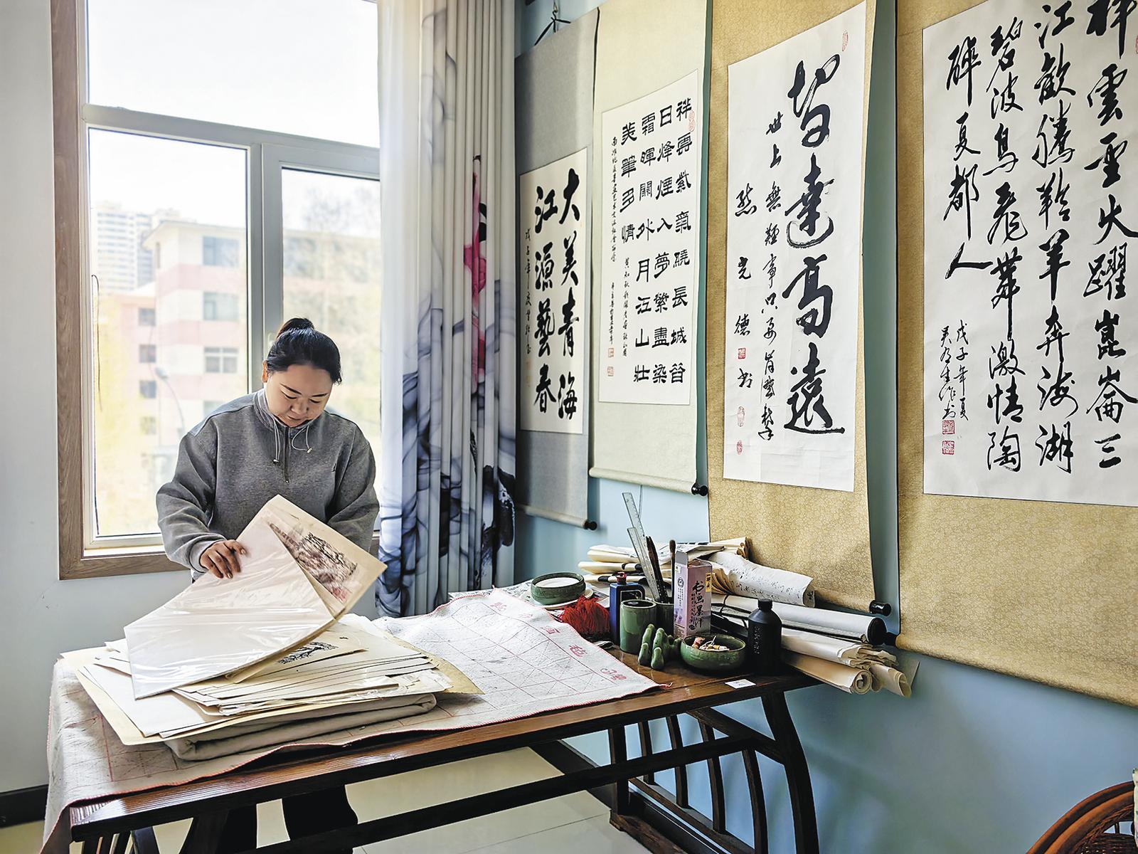馬哈力麥的鉤織工作室制作花束毯。 本報記者 賈泓 攝