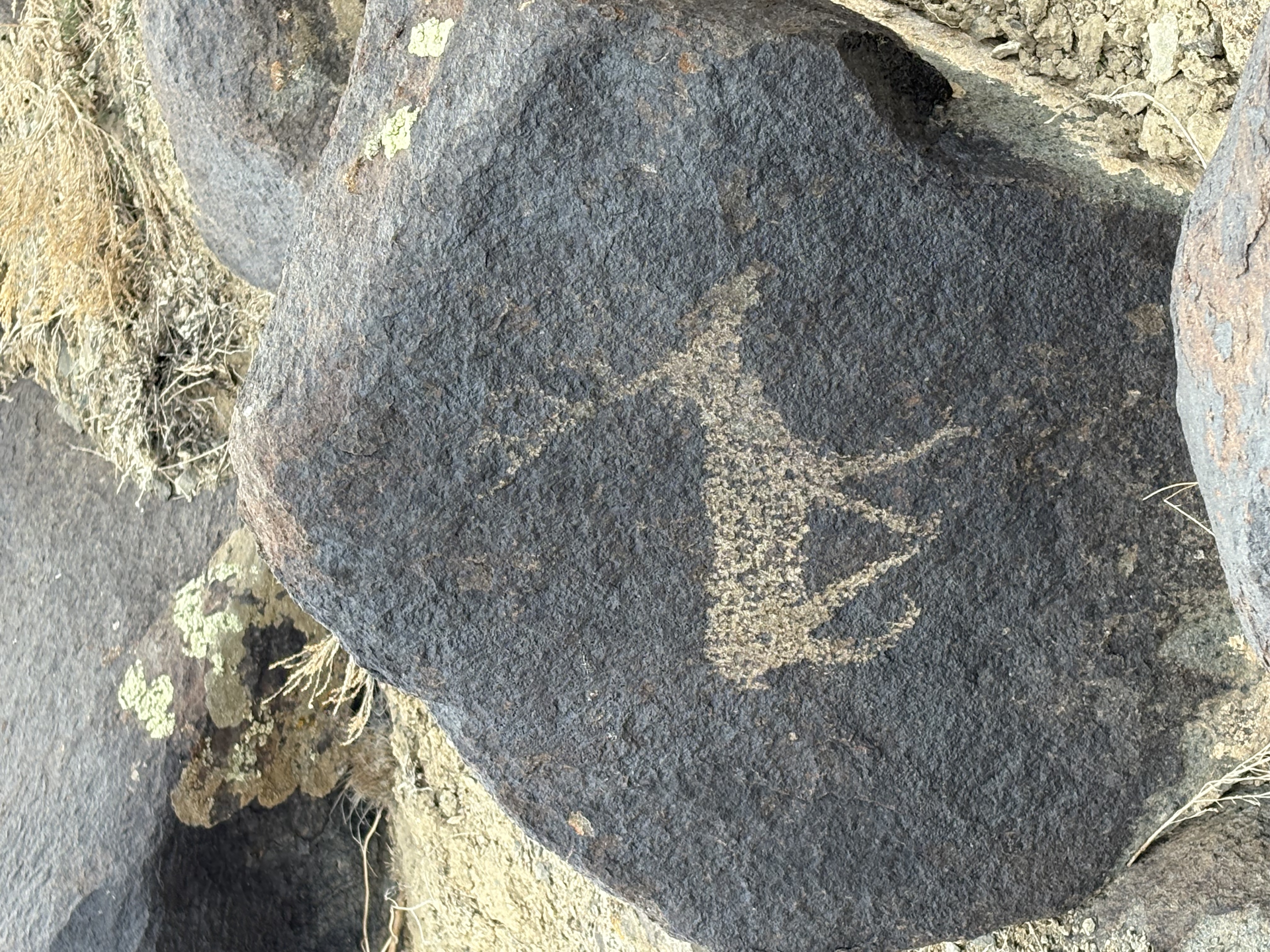 無獨有偶,在第四次全國文物普查中,除博州外,阿勒泰地區(qū)、哈密市也有巖畫新發(fā)現(xiàn)。4月,青河縣的吾勒肯布勒合巖畫被列入“四普”新發(fā)現(xiàn)。60幅以點線鑿刻的巖畫清晰可辨,既有生動的狩獵場景,也有古人對生命繁衍的崇拜。其中,鹿、駱駝、馬等十余種動物栩栩如生,夸張的鹿角極具藝術感染力。
