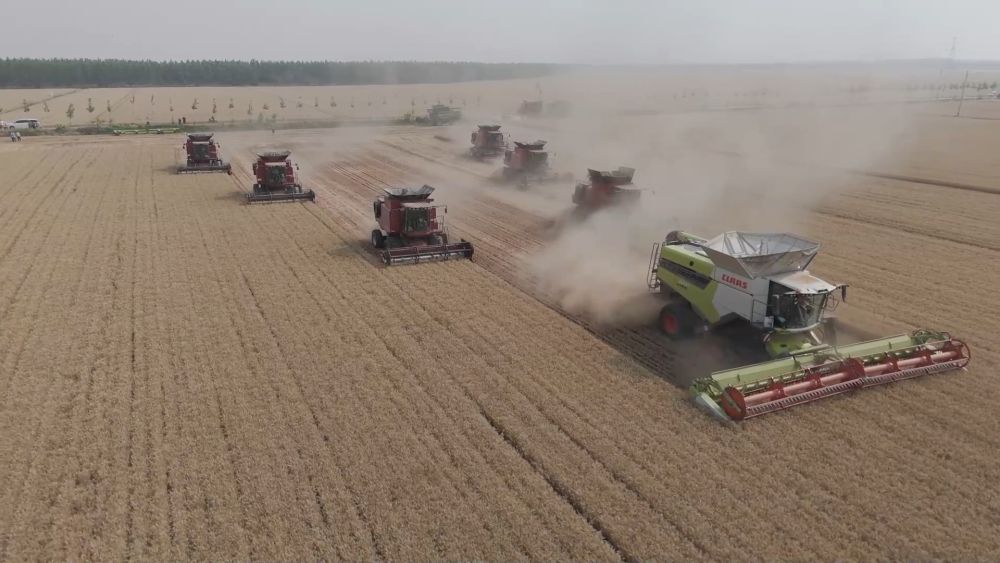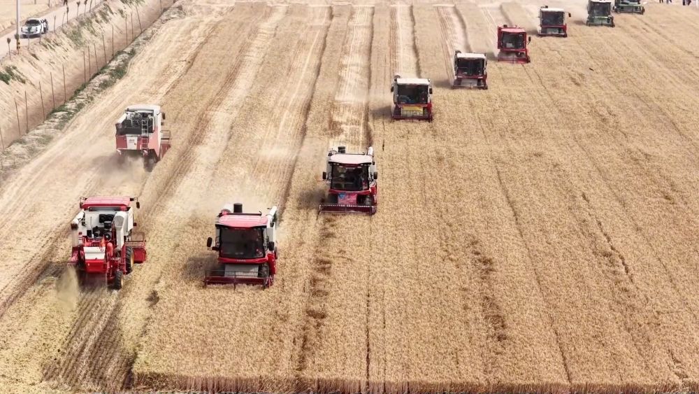 5月29日,位于河南省西華縣的黃泛區(qū)農(nóng)場(chǎng)內(nèi)麥浪滾滾。一望無(wú)際的麥田里,大型聯(lián)合收割機(jī)來(lái)回穿梭,這也標(biāo)志著黃泛區(qū)農(nóng)場(chǎng)正式迎來(lái)今年小麥大面積機(jī)收。