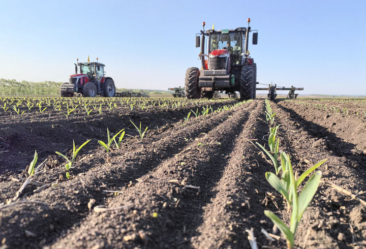2025年5月23日,在北大荒集團黑龍江建設(shè)農(nóng)場有限公司第三管理區(qū),農(nóng)機工人駕駛搭載北斗衛(wèi)星導(dǎo)航自動系統(tǒng)的大型中耕深松機械,對剛出苗的玉米地塊進行深松放寒作業(yè)。新華社發(fā)(許穎獻攝)