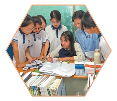 北京師范大學(xué)“優(yōu)師計(jì)劃”師范生張然(中)在實(shí)習(xí)時為學(xué)生講解輔導(dǎo)。 北京師范大學(xué)供圖