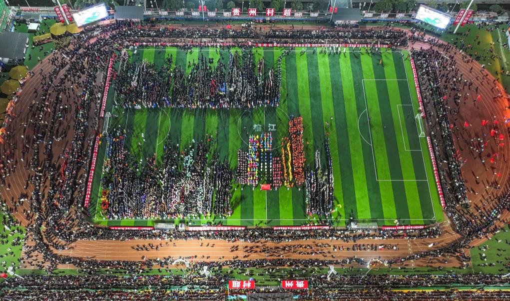 這是2025年貴州“村超”開幕式現(xiàn)場(chǎng)(無(wú)人機(jī)照片)。新華社記者 楊文斌 攝