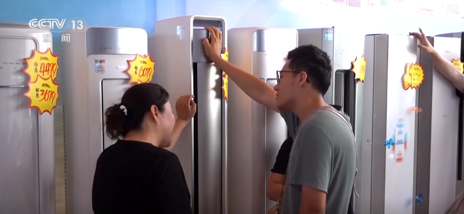 店主介紹,當(dāng)前消費(fèi)者“以舊換新”需求旺盛。6月份以來,店內(nèi)銷售量環(huán)比增長了33%,空調(diào)、冰箱等清涼家電成為消費(fèi)主力。