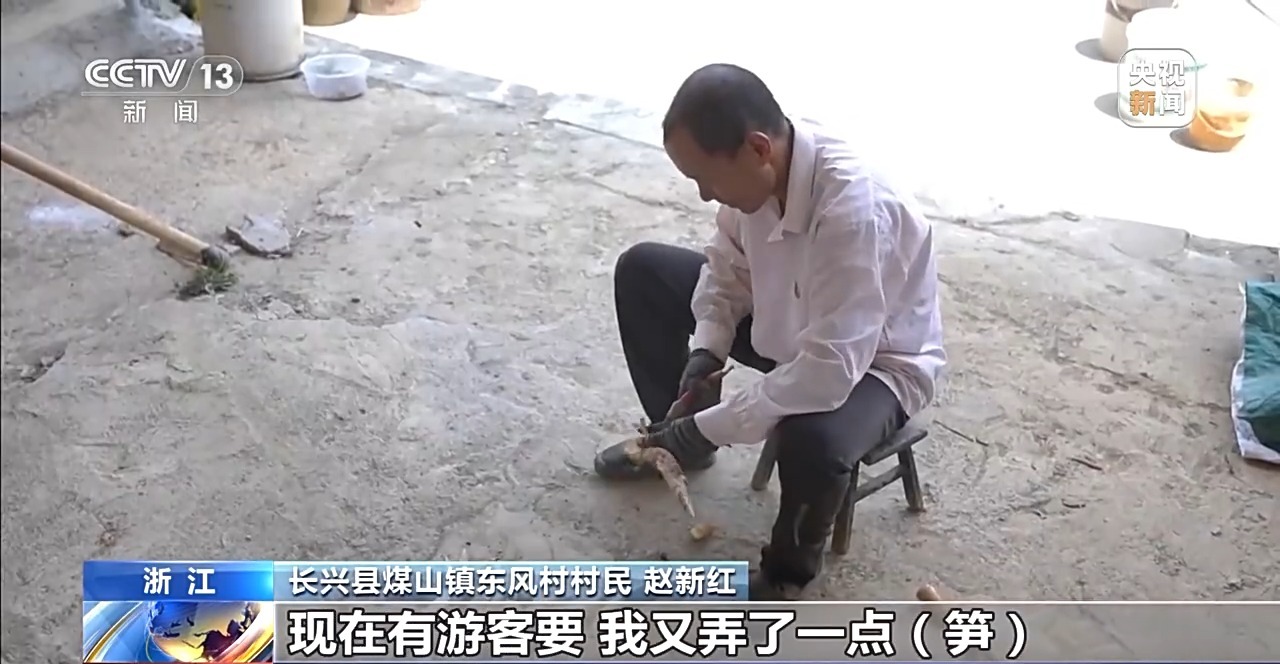長興縣煤山鎮(zhèn)東風村村民 趙新紅:感覺很好賣,現(xiàn)在有游客要,我又弄了一點筍,把好一點的挑出來,價格比批發(fā)上門收好多了。