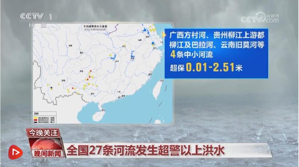 水利部消息,6月21日8時(shí)至22日8時(shí),受降雨影響,廣西柳江干流及支流方村河、貴州沅江支流巴拉河、云南右江支流舊莫河及瀾滄江支流勐統(tǒng)河等27條河流發(fā)生超警以上洪水,最大超警幅度3.71米,其中廣西方村河、貴州柳江上游都柳江及巴拉河、云南舊莫河等4條中小河流超保0.01~2.51米,云南勐統(tǒng)河發(fā)生1979年以來(lái)最大洪水。此外,江蘇里下河地區(qū)新增8站水位超警0.02~0.51米。