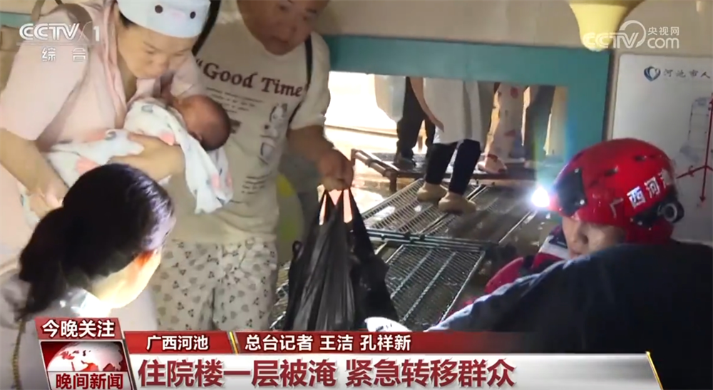 這兩天,廣西河池多地遭遇強(qiáng)降雨天氣。河池市人民醫(yī)院住院部大樓一層出現(xiàn)嚴(yán)重積水,幾百名住院的病人和陪護(hù)家屬需要轉(zhuǎn)移,救援人員迅速行動(dòng)起來(lái)。