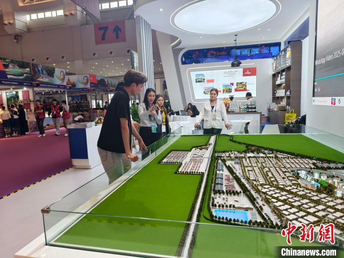 6月20日,第9屆南博會萬象物流園展位工作人員為參觀者介紹園區(qū)情況。 中新社記者 韓帥南 攝