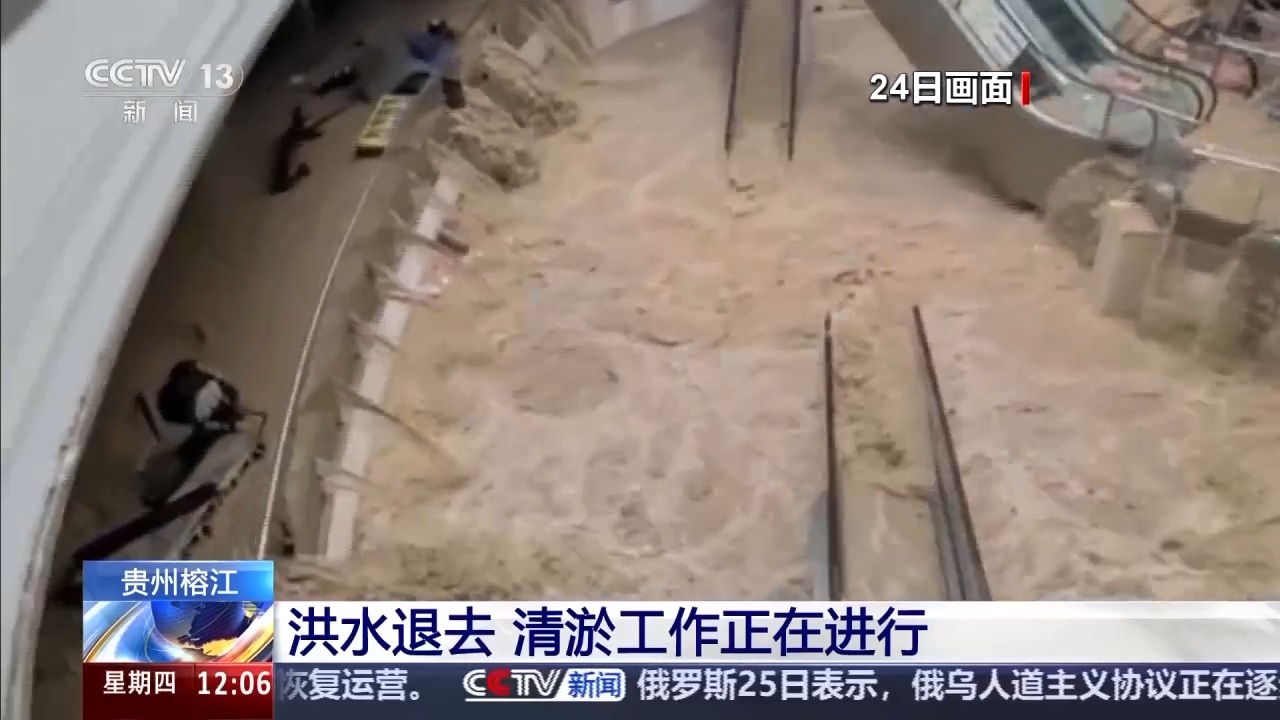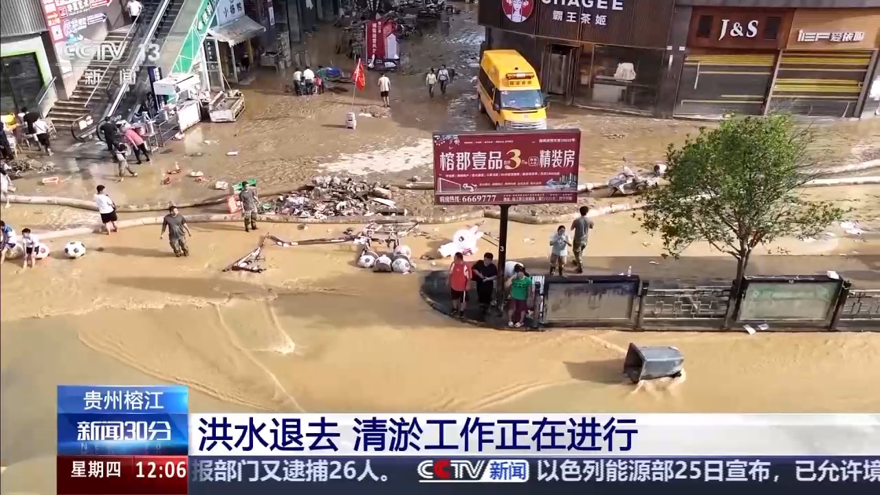 最近,貴州黔東南州遭遇持續(xù)強降雨,其中,榕江、從江兩縣24日先后經歷洪峰過境,縣城多地被淹,受災嚴重。隨著降雨暫停,洪水水位明顯下降,清淤工作正在進行。