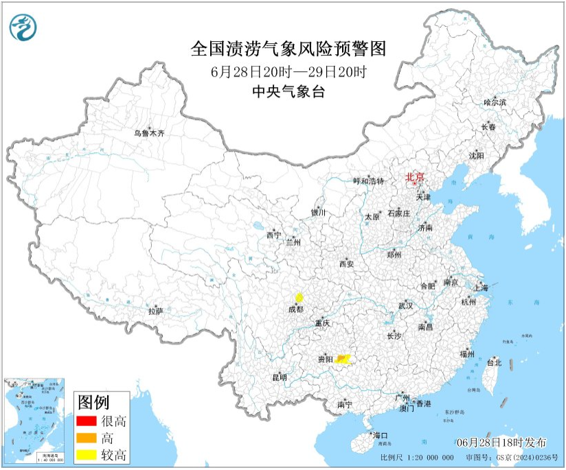 中央氣象臺6月28日18時發(fā)布漬澇風險氣象預(yù)報: