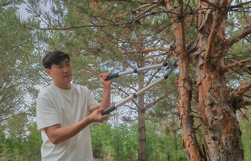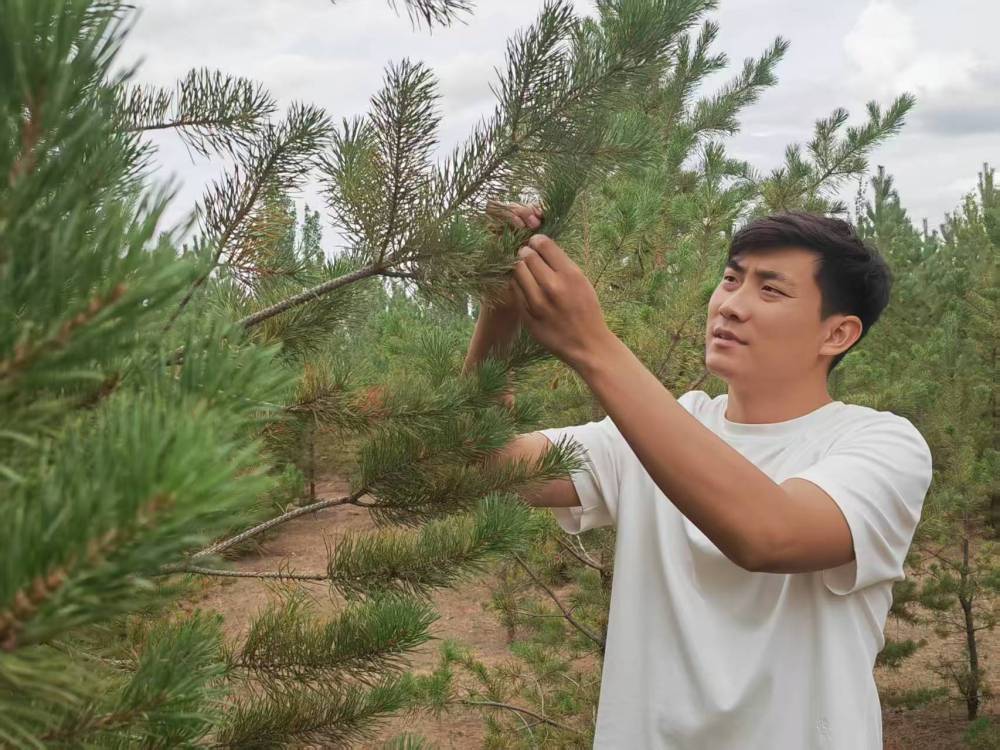 2017年,在爺爺?shù)膸ьI(lǐng)下,石健陽正式投身植綠事業(yè)?!斑^去沙害嚴重,老一輩治沙人最迫切的是要定住風(fēng)沙,讓地面先綠起來,所以當時的樹種主要是生長快的楊樹?!笔£栒f,“幾十年過去,楊樹林老化嚴重,出現(xiàn)大面積枯死的情況。我們現(xiàn)在陸續(xù)對老化的林地進行樹種更換,補種四季常青、生命周期更長的樟子松,目前已經(jīng)補種了5萬畝?!?/p>