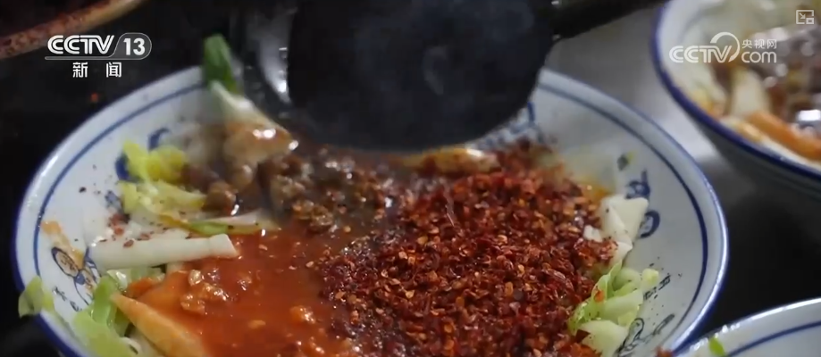 說(shuō)到面食,繞不過陜西著名的 面。這種面的特點(diǎn)是寬厚筋道,下鍋煮熟以后撈出,要撒上蔥姜蒜和辣椒面,再潑上一勺熱油。