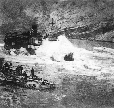 民生公司的船只經(jīng)過激流險(xiǎn)灘,將戰(zhàn)略物資運(yùn)送到后方。湖北省宜昌市檔案館供圖