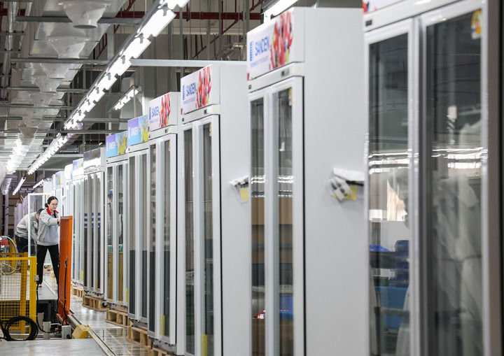 這是在西科冷鏈廣東江門制造基地的產(chǎn)線上,工人對一批出口海外的商用冷柜進行外觀檢查(2025年3月22日攝)。新華社記者 劉大偉 攝