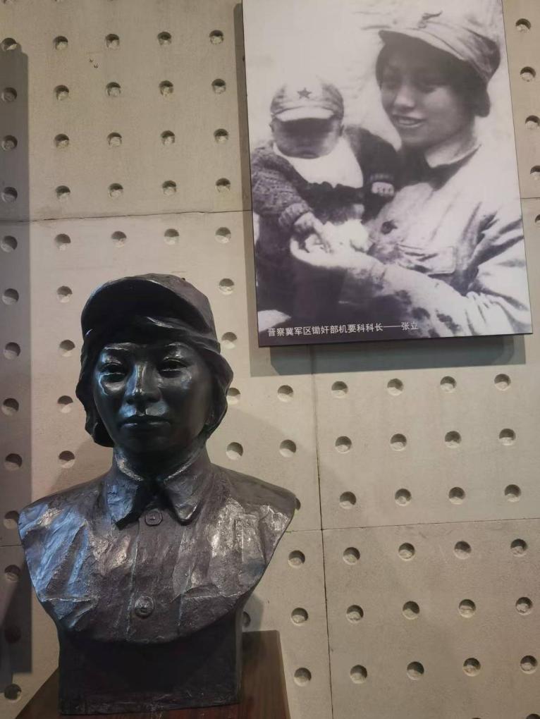 “這位是偉大的母親張立,她是晉察冀軍區(qū)鋤奸部機(jī)要科科長(zhǎng)。在阜平的‘柏崖慘案’中,她不幸落入敵人手中,面對(duì)日軍的嚴(yán)刑拷打,她寧死不屈,日軍將她不滿三個(gè)月大的小兒子扔進(jìn)滾燙的開(kāi)水鍋中,活活煮死。張立也被砍掉一只右臂后,被用刺刀挑死,犧牲時(shí)年僅23歲?!睂O旗綺動(dòng)情地向參觀者介紹。