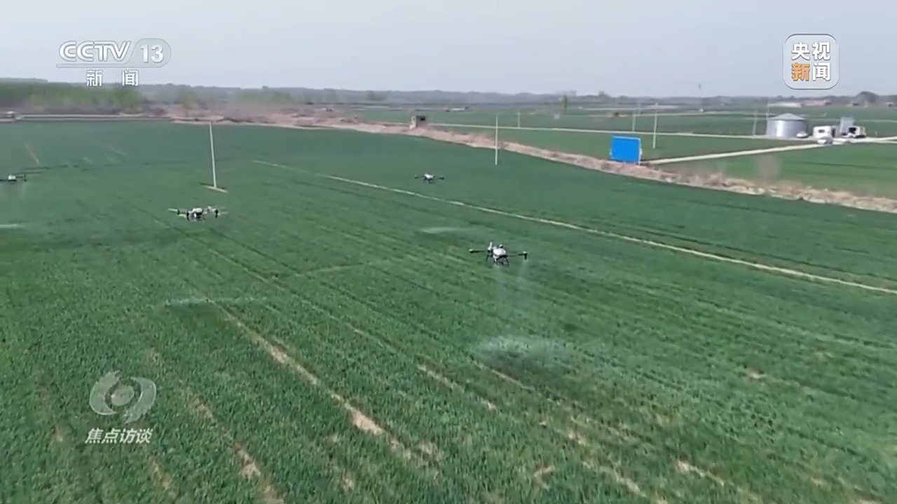 5月17日,40攝氏度高溫天氣到來的前兩天,當(dāng)?shù)囟鄠€小麥主產(chǎn)縣,一臺臺植保無人機低空掠過綠浪翻滾的麥穗,噴灑出細(xì)密的“藥雨、肥雨”,為久旱的麥田送來了及時雨。