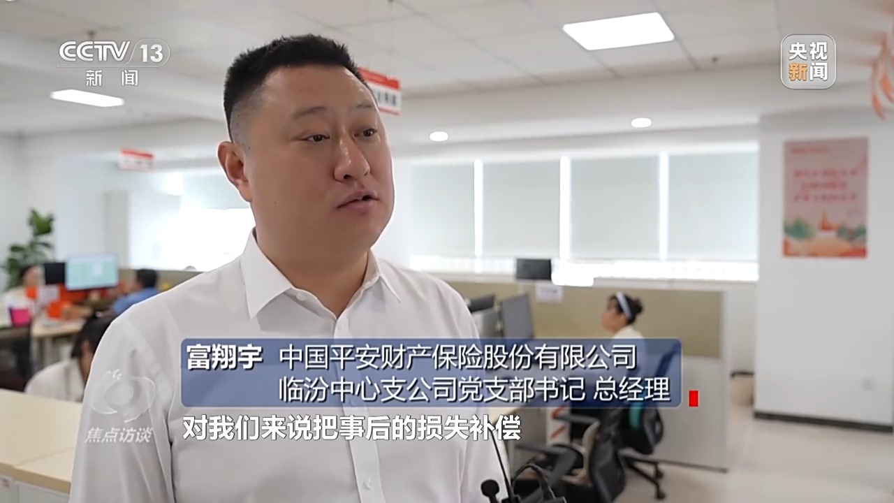 中國平安財產(chǎn)保險股份有限公司臨汾中心支公司黨支部書記、總經(jīng)理 富翔宇:老百姓的產(chǎn)量有保證了,對我們來說把事后的損失補償調(diào)整到事中的風(fēng)險減量工作,對我們的整體成本控制也是有很大幫助的。