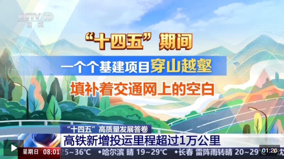 “十四五”時(shí)期,中國基建不斷跑出向新力和加速度,高鐵新增投運(yùn)里程超過1萬公里,每10個(gè)行政村就有9個(gè)通上了5G。