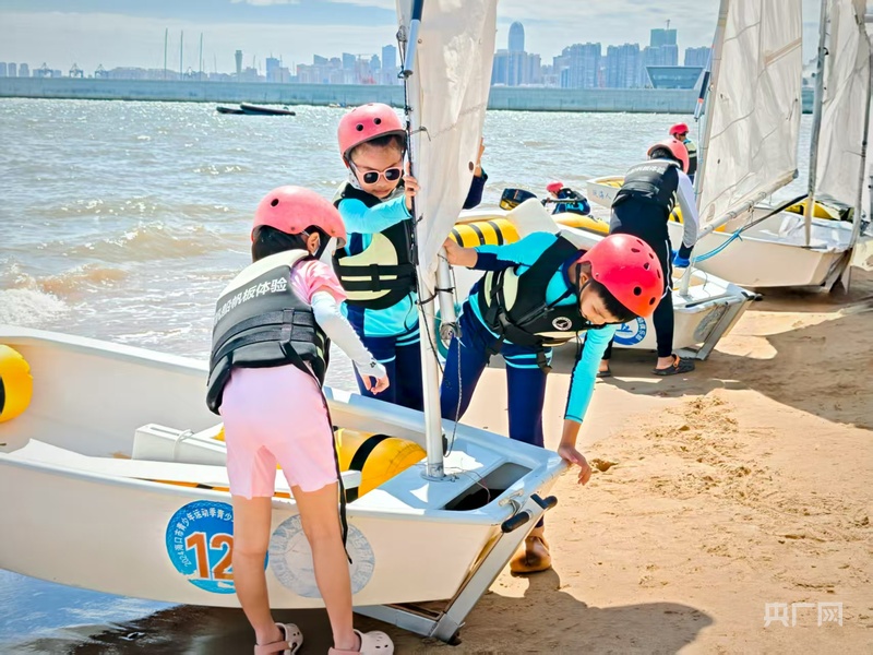 孩子們體驗帆船運動(央廣網記者 蔡文娟 攝)