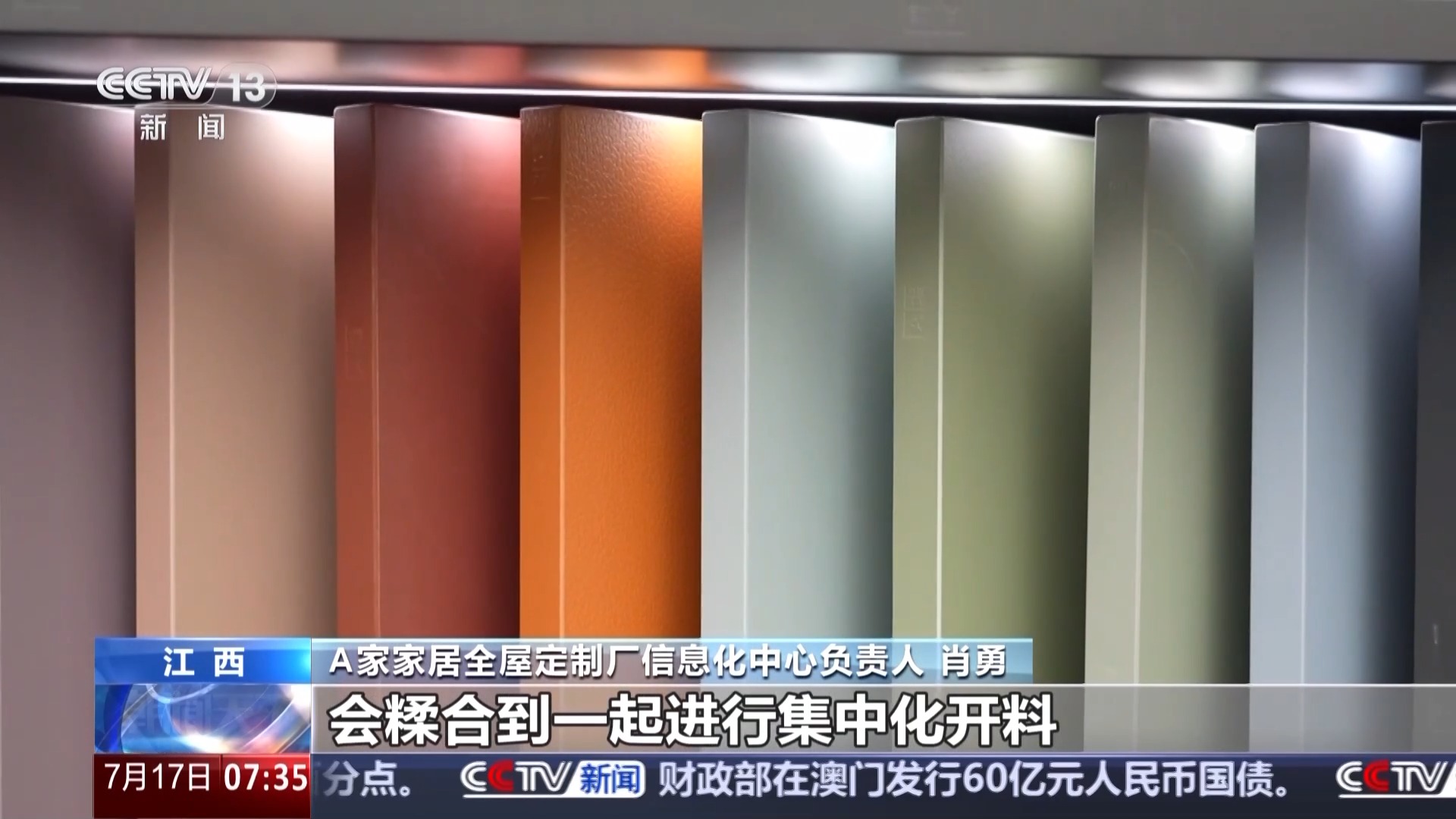 A家家居全屋定制廠信息化中心負(fù)責(zé)人 肖勇:相同顏色的數(shù)據(jù)會糅合到一起進(jìn)行集中化開料,最大效率提高整個板材的利用率,提效在93%。