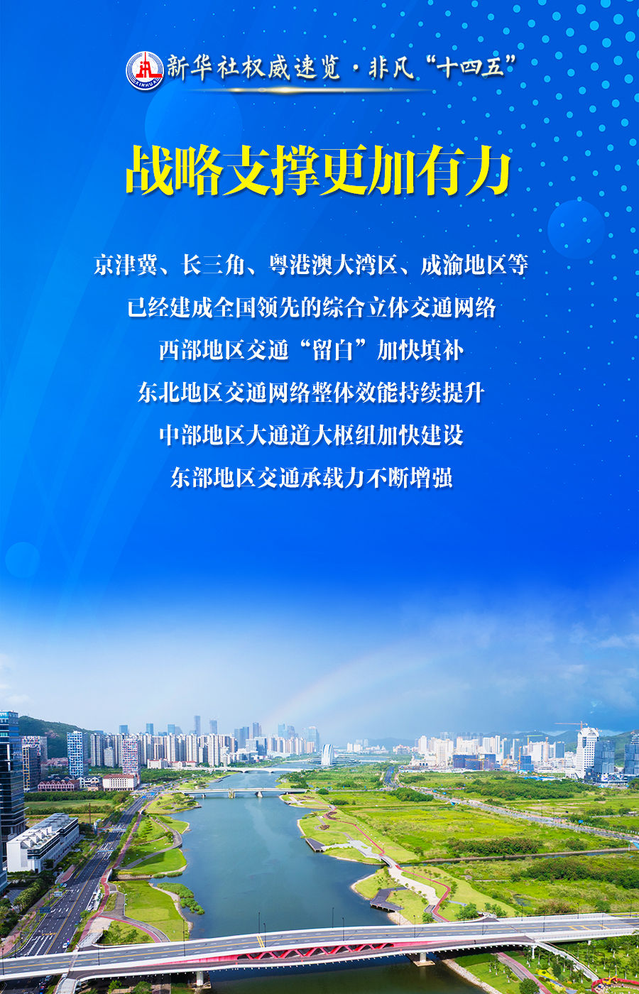 “十四五”時期,我國加快建設交通強國實現良好開局。在21日舉行的“高質量完成‘十四五’規(guī)劃”發(fā)布會上,交通運輸部部長劉偉說,這五年,我國交通運輸事業(yè)取得了歷史性成就,綜合交通運輸體系建設實現突破性進展。這組海報,帶你去看。
