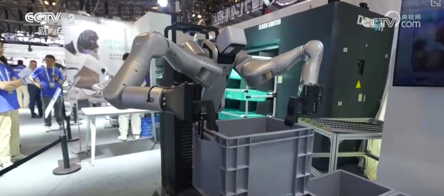 記者在人工智能大會現(xiàn)場觀察到,2025年,人形機(jī)器人已經(jīng)正式從展覽展示變?yōu)樯逃寐涞亍,F(xiàn)場展示的多款機(jī)器人都已經(jīng)在產(chǎn)線投入使用,機(jī)器人快速演進(jìn)的背后是大量的數(shù)據(jù)采集和訓(xùn)練。