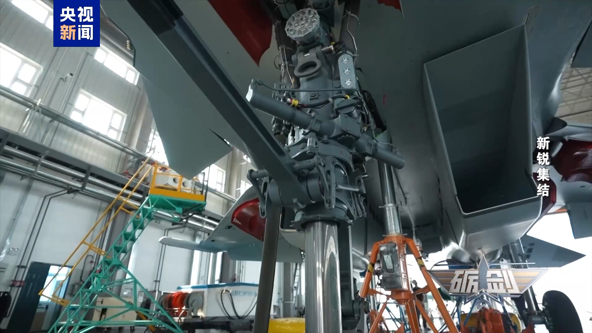 空軍特級飛行員 殲-15首飛試飛員 李國恩:起落架設計還是比較復雜的。一是對強度的考驗,二是在前起落架觸及甲板的時候,能量比較好地得到釋放緩沖,這是前起落架設計的一個難點。你可以看到與其他的陸基飛機比,這個起落架要粗。我國工業(yè)水平整體也在進步,未來我們希望它結構要細一點、輕一點,飛機越輕,空中的性能越好。