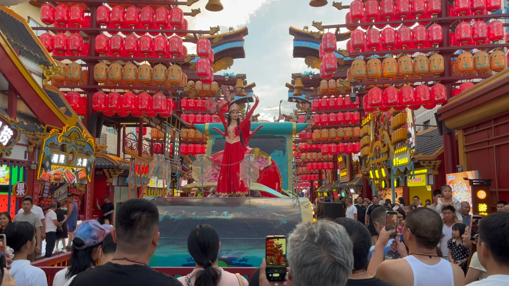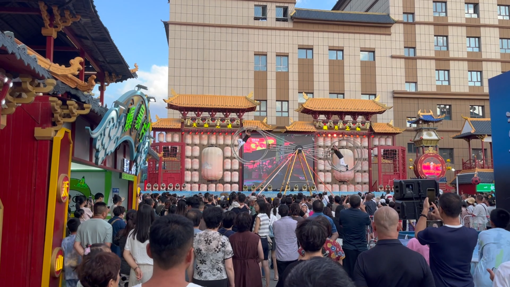 在烏魯木齊市的天山明月城特色街區(qū),這里匯集了餐飲、休閑娛樂、歌舞演藝等業(yè)態(tài),每天都有各類演出活動,在豐富市民游客文化活動的同時,激發(fā)消費活力,助力“夜經(jīng)濟(jì)”發(fā)展。