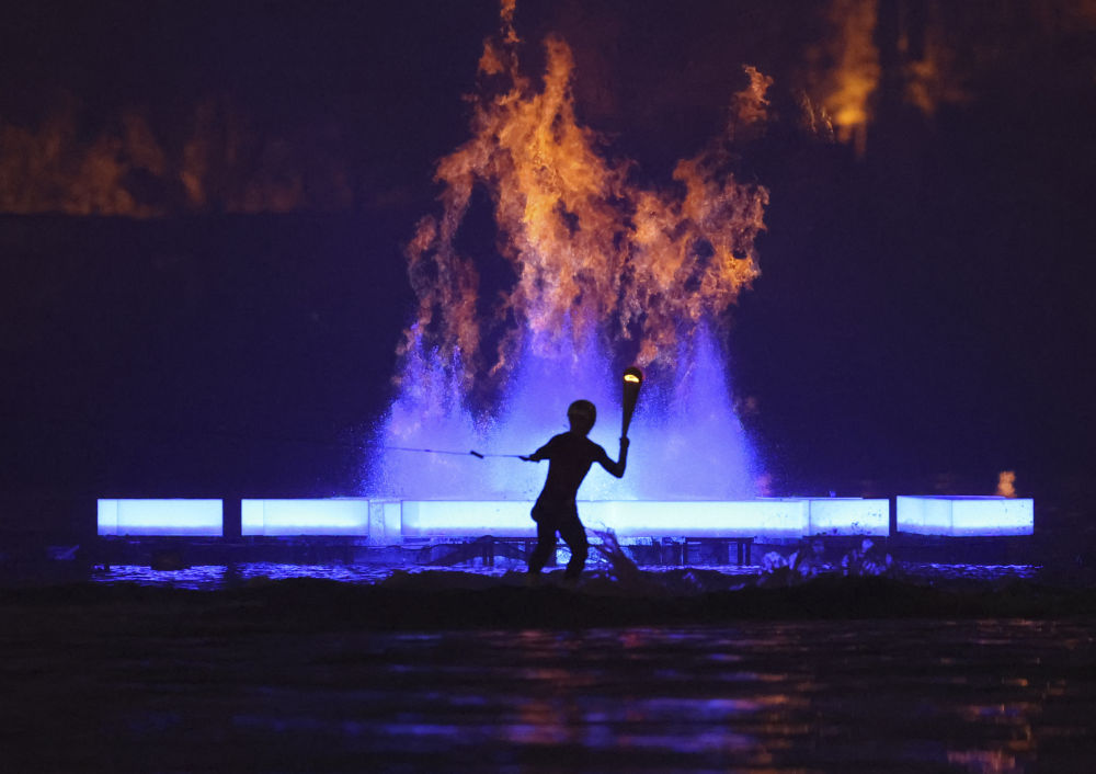 此次開(kāi)幕式進(jìn)行了世運(yùn)會(huì)歷史上第一次主火炬點(diǎn)燃儀式,主創(chuàng)團(tuán)隊(duì)經(jīng)過(guò)多輪研討,采取火在噴泉中燃燒作為主要?jiǎng)?chuàng)意點(diǎn),通過(guò)精心設(shè)計(jì),讓天然氣向上穿過(guò)水柱,實(shí)現(xiàn)節(jié)能燃燒。