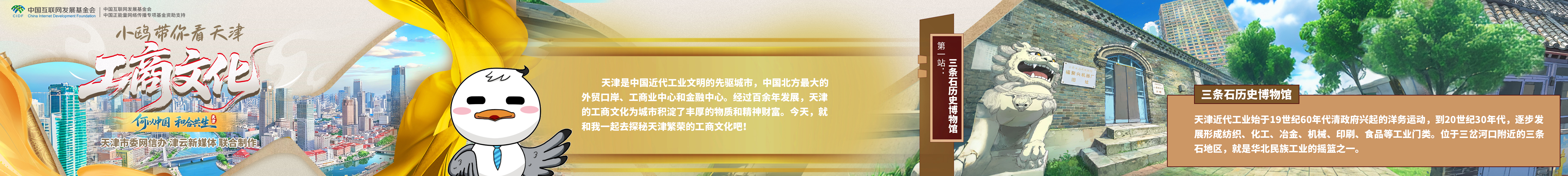 天津是中國(guó)近代工業(yè)文明的先驅(qū)城市,中國(guó)北方最大的外貿(mào)口岸、工商業(yè)中心和金融中心。經(jīng)過(guò)百余年發(fā)展,天津的工商文化為城市積淀了豐厚的物質(zhì)和精神財(cái)富。今天,就和我一起去探秘天津繁榮的工商文化吧!