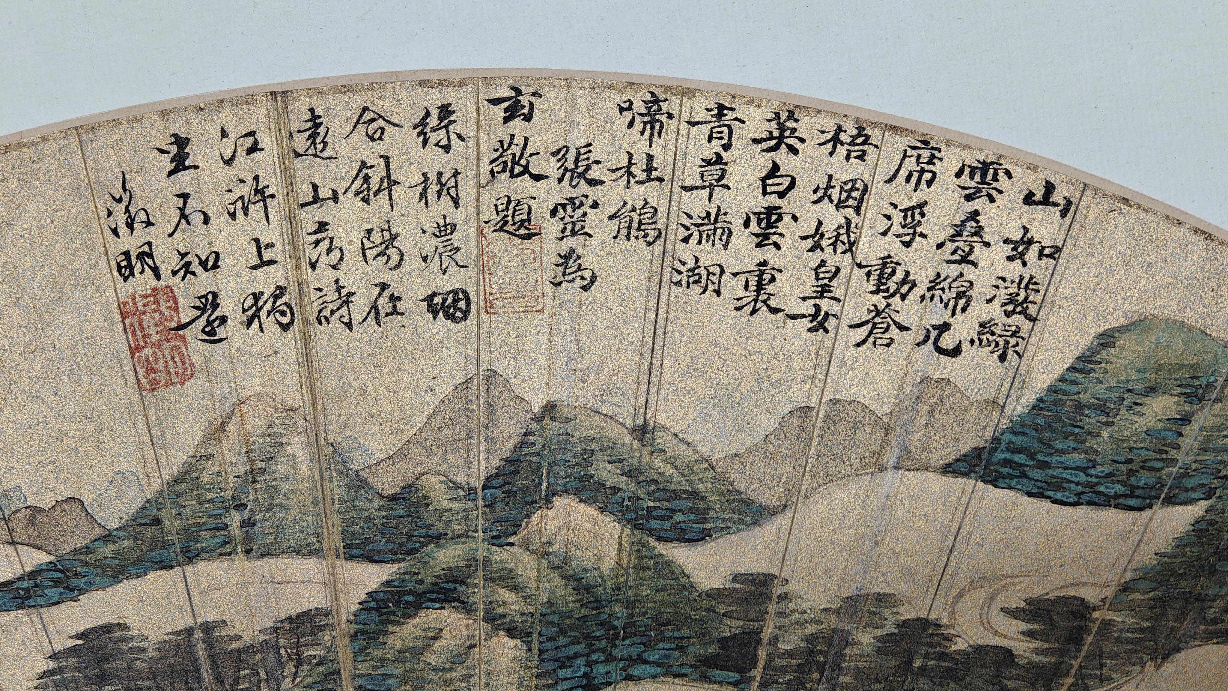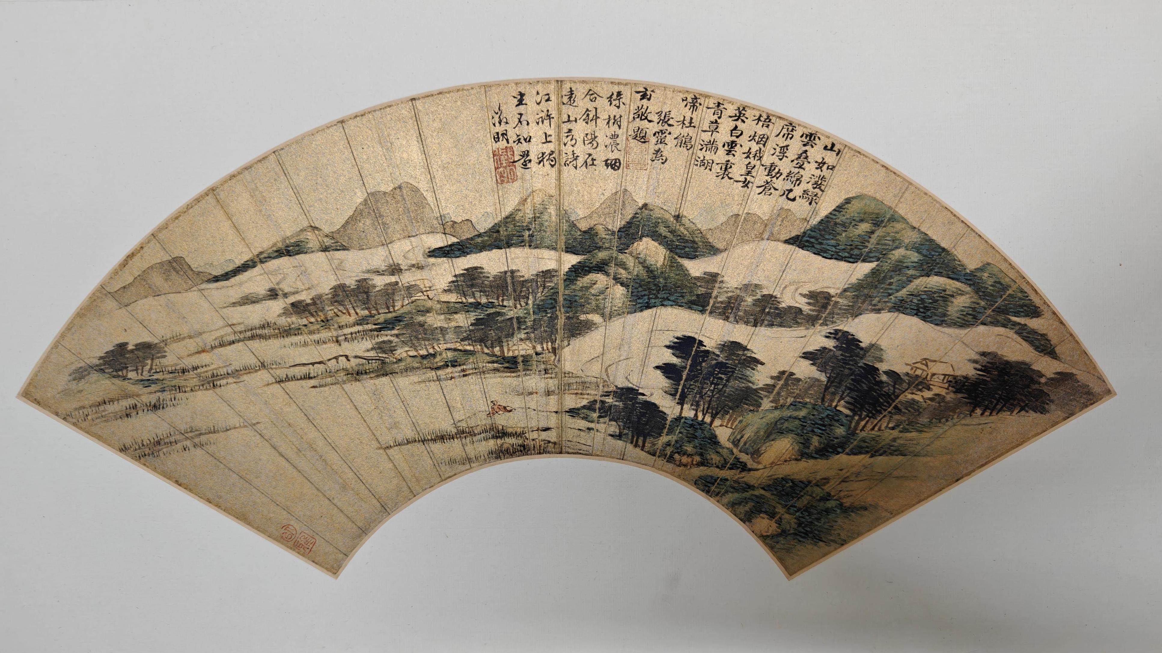 山水畫在金箋扇面上更顯匠心