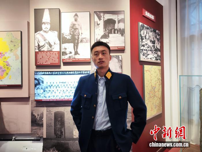 天津市吉鴻昌舊居,演員沉浸式重現(xiàn)抗日英雄吉鴻昌生前場(chǎng)景。中新網(wǎng) 劉越 攝