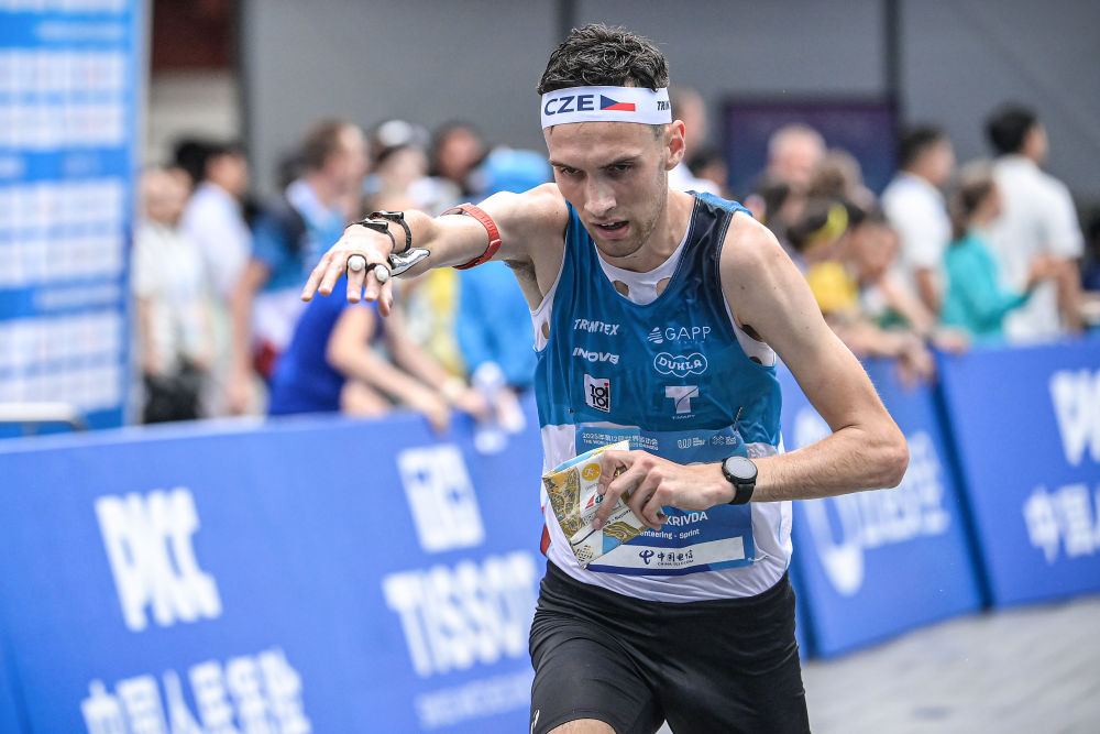 8月10日,捷克選手克日夫達(dá)在2025年成都世運會定向男子短距離決賽中。