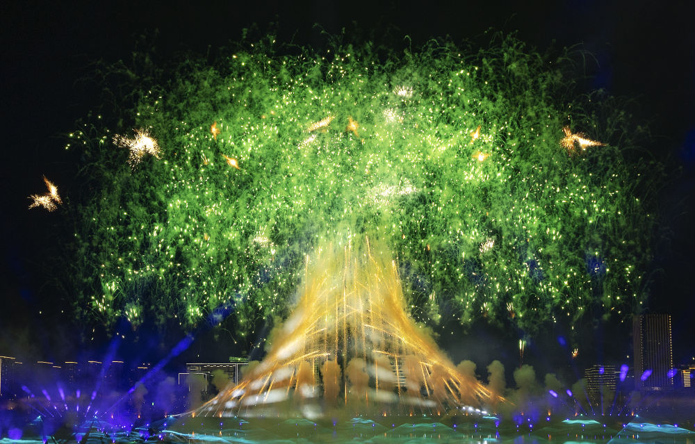 這是8月7日拍攝的開幕式上的焰火表演。新華社記者 陳益宸 攝