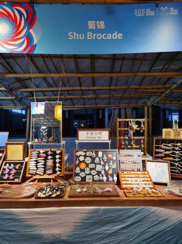 世運村里,泰國運動員“右甩”“左翻”練起川劇水袖,意大利運動員饒有興味地制作新津繩編,日本選手在蜀錦工藝品前駐足……