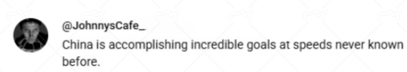網(wǎng)友@JohnnysCafe_表示,“中國正在以前所未有的速度實現(xiàn)令人難以置信的目標(biāo)?!?/p>