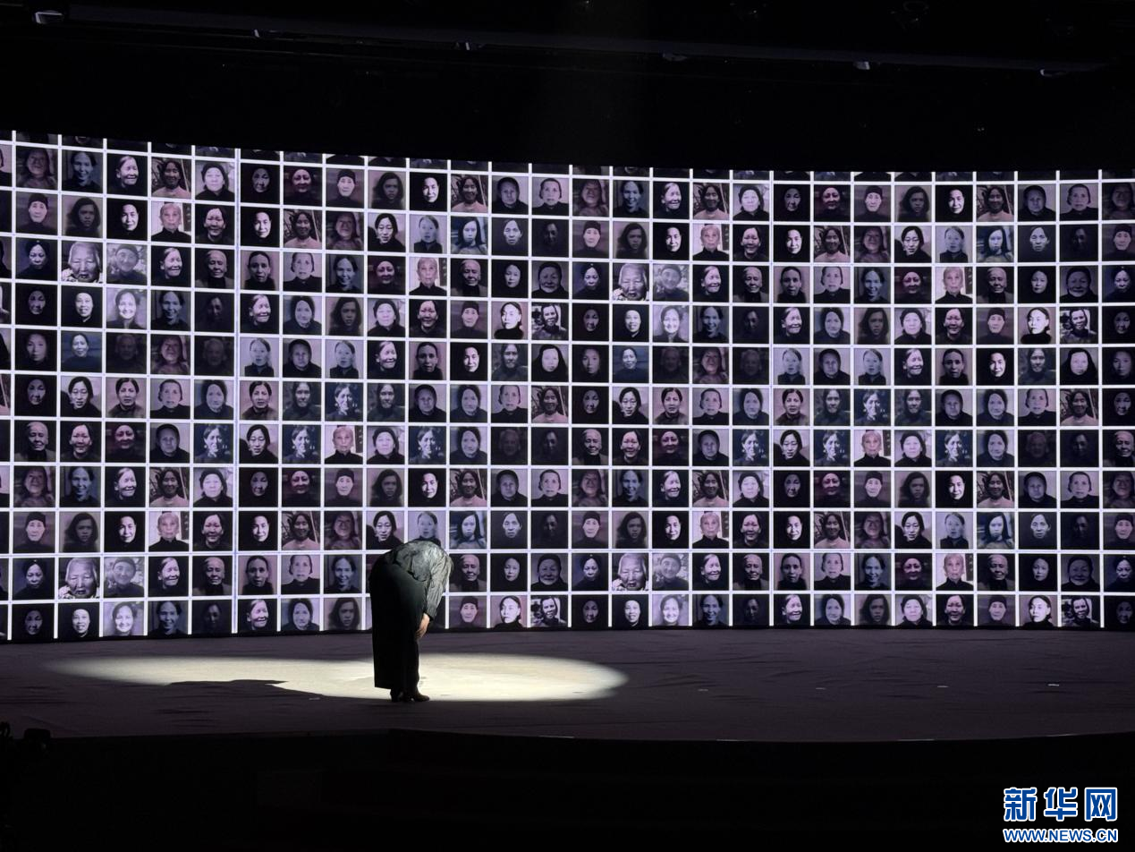 當(dāng)一位位太行奶娘的黑白照片,匯聚到屏幕上時(shí),歌舞劇《太行奶娘》導(dǎo)演楊梅轉(zhuǎn)身,面向奶娘們深深鞠躬。