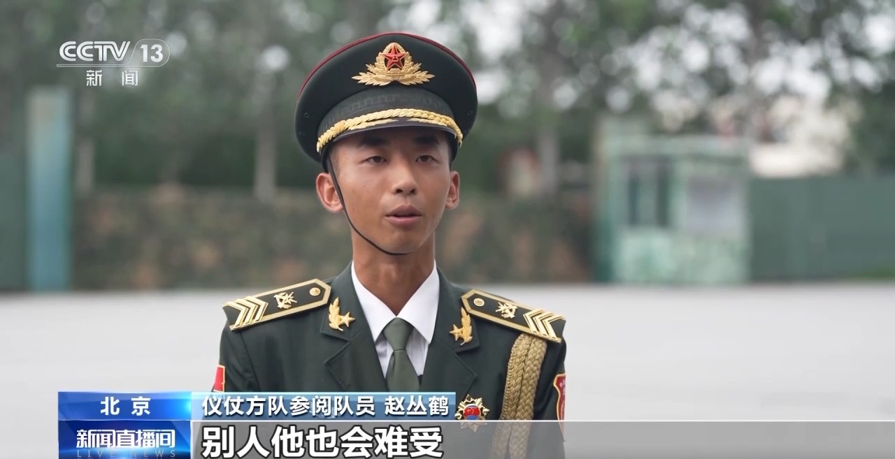儀仗方隊受閱隊員 趙叢鶴:其實當(dāng)你難受的時候,別人他也會難受,像這個時候我們比拼的就不是身體素質(zhì)了,我們比拼的是意志力。