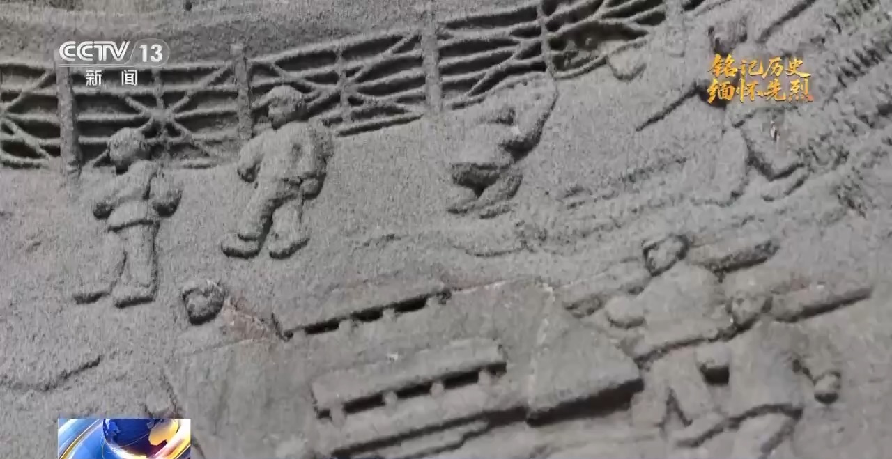 總臺記者 任秋宇:北靠山村曾是東北抗聯(lián)第六軍的重要后勤補(bǔ)給地和兵員來源地,這有個石雕畫反映出抗日戰(zhàn)爭時期軍民魚水情深的故事,這個故事叫“抬車送糧”,就發(fā)生在北靠山村。
