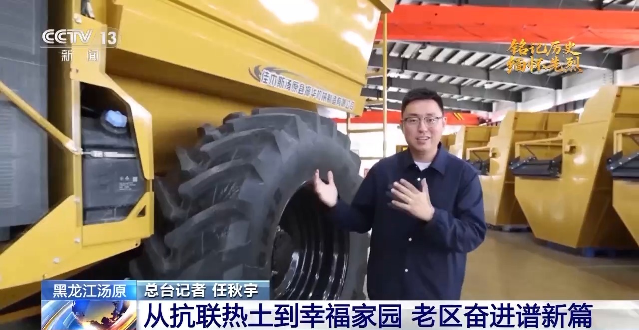 總臺記者 任秋宇:我的身高是185cm,我身邊的輪胎幾乎和我一樣高,這臺機(jī)械是湯原縣一家機(jī)械制造企業(yè)自主研發(fā)的大型鮮食玉米收割機(jī)。以往鮮食玉米的收割,主要依靠人工和小型的機(jī)械,像這么大的收割機(jī),因為技術(shù)“卡脖子”的原因只能依賴進(jìn)口。而這家企業(yè)通過自主研發(fā),解決了技術(shù)上的難題,這臺機(jī)械正在試驗階段,明年就能上市了。