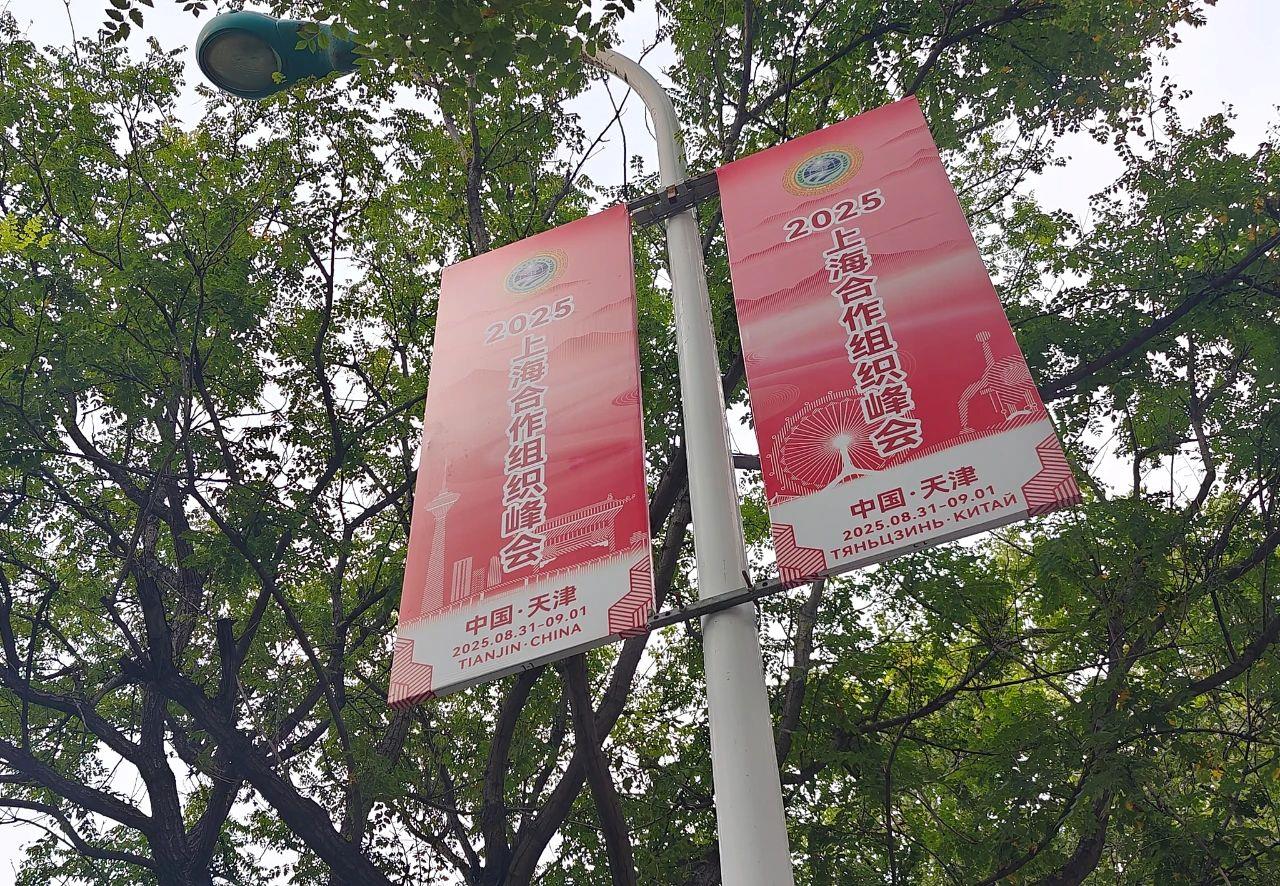 走進(jìn)天津,會發(fā)現(xiàn)體現(xiàn)上合元素的旗幟已經(jīng)掛滿天津主干道路兩側(cè),賞心悅目的花籃也點綴在大街小巷。