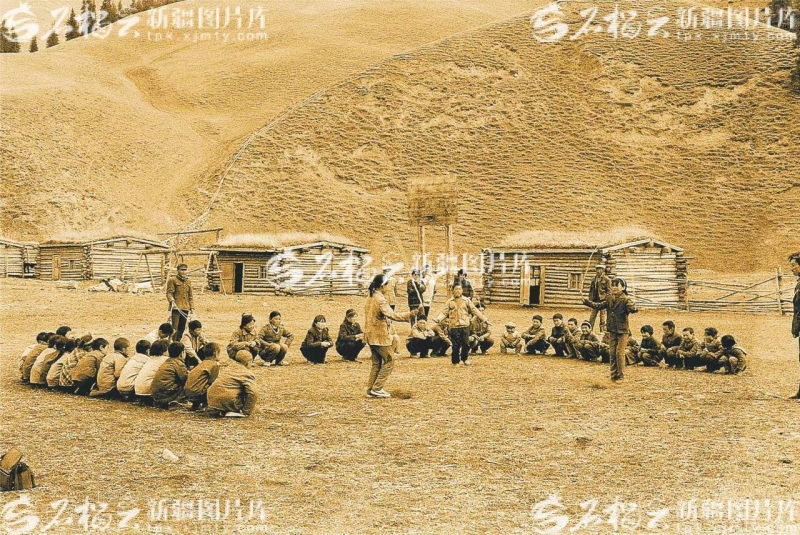 新疆圖片庫(kù)里,一張泛黃的老照片,生動(dòng)再現(xiàn)了烏魯木齊縣水西溝鎮(zhèn)廟爾溝中學(xué)的“孩提”時(shí)光:光禿禿的大山腳下,幾座松木搭建起來(lái)的簡(jiǎn)易房屋,矮趴趴“長(zhǎng)”在草場(chǎng)上。遠(yuǎn)處空地上,一群學(xué)生們蹲在地上圍成圈,正在觀看幾個(gè)同學(xué)進(jìn)行跳繩比賽。