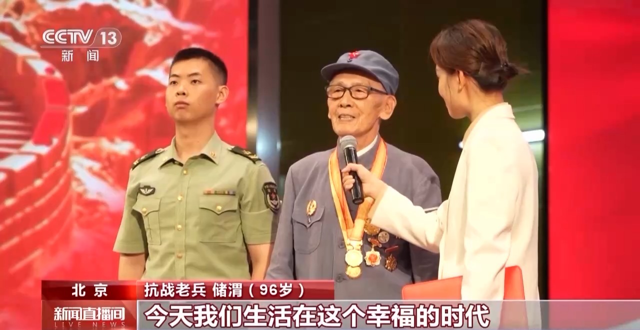 抗戰(zhàn)老兵 儲渭(96歲):我當(dāng)兵的時候不到15歲,現(xiàn)在老戰(zhàn)友已經(jīng)不太多了。經(jīng)歷了14年的抗日戰(zhàn)爭,今天我們生活在幸福的時代,這是黨的關(guān)懷,這是我們不能忘記的。