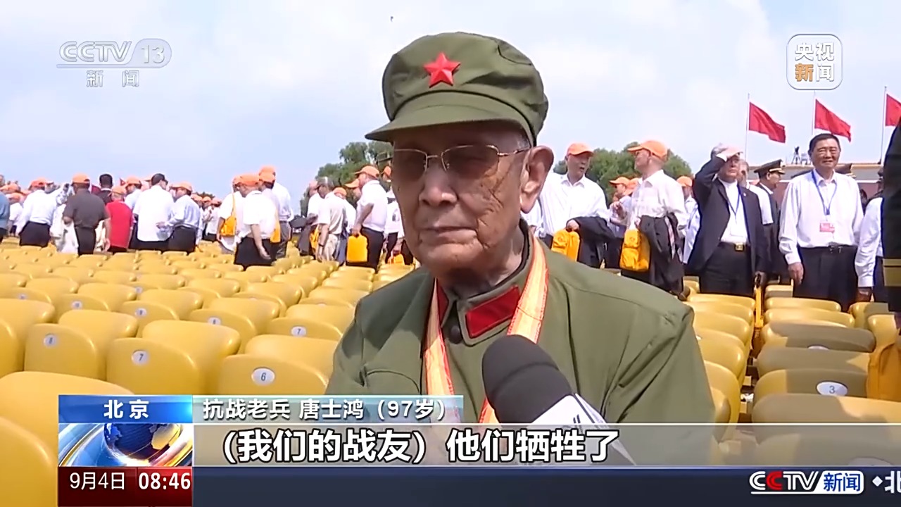 抗戰(zhàn)老兵 唐士鴻:我們的戰(zhàn)友他們犧牲了,沒(méi)有看到今天的勝利。現(xiàn)在中國(guó)人民解放軍能夠戰(zhàn)勝一切的敵人,叫戰(zhàn)友在地下安息。前一代人故去了,下一代或者多代要把接力棒接下來(lái)繼續(xù)戰(zhàn)斗。不要戰(zhàn)爭(zhēng),不要打仗,要過(guò)和平的生活。