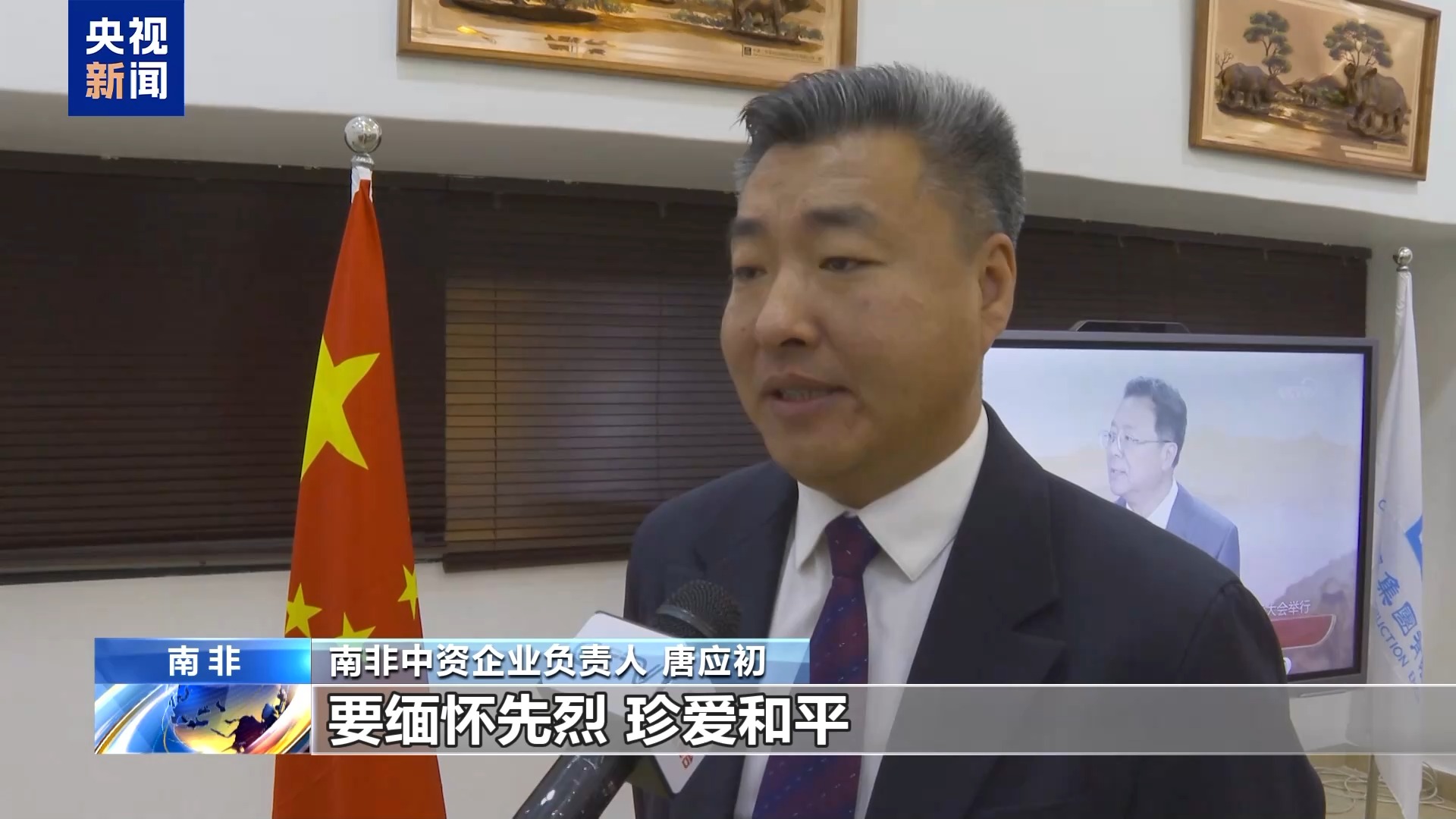 南非中資企業(yè)負(fù)責(zé)人 唐應(yīng)初:歷史告訴我們要緬懷先烈、珍愛和平。只有團(tuán)結(jié)才能勝利,只有合作才能共贏。作為海外建設(shè)者,今天我們胸懷祖國,奮戰(zhàn)一線。用實(shí)際行動(dòng)證明,中國建設(shè)者攻堅(jiān)克難、敢打必勝。
