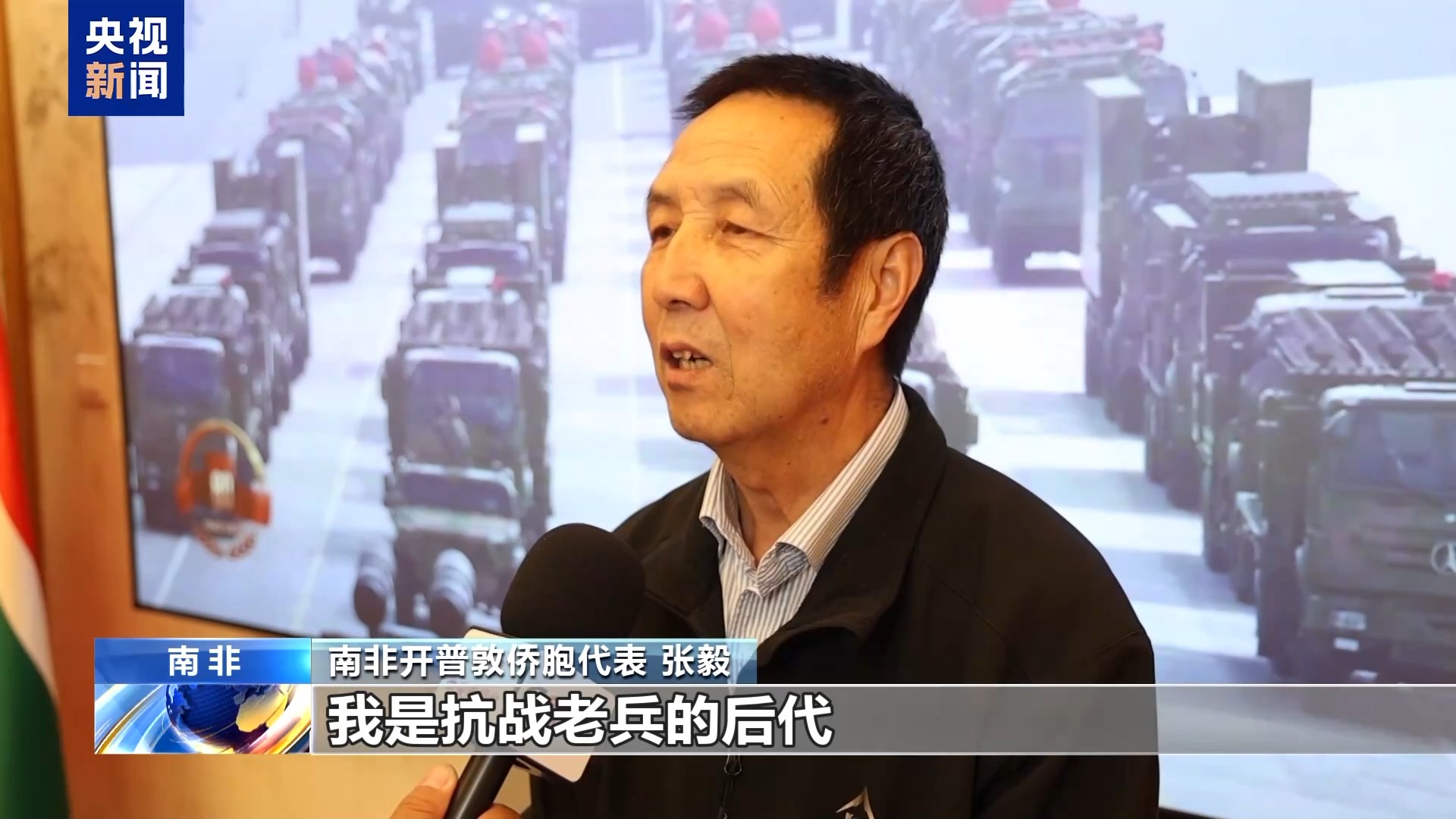 南非開普敦僑胞代表 張毅:我是抗戰(zhàn)老兵的后代,我父親1941年在冀中平原加入八路軍,曾參與多場(chǎng)戰(zhàn)斗。作為未經(jīng)歷戰(zhàn)爭的新一代,我們一定要繼承老一代革命先烈的精神,發(fā)揚(yáng)他們的必勝信念,為世界和平貢獻(xiàn)力量。