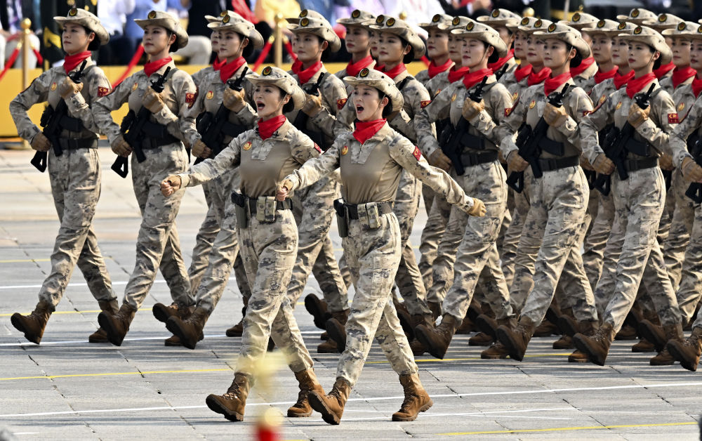 民兵方隊(duì)全部由女民兵組成。這是民兵首次亮相以紀(jì)念抗戰(zhàn)勝利為主題的閱兵活動(dòng)。