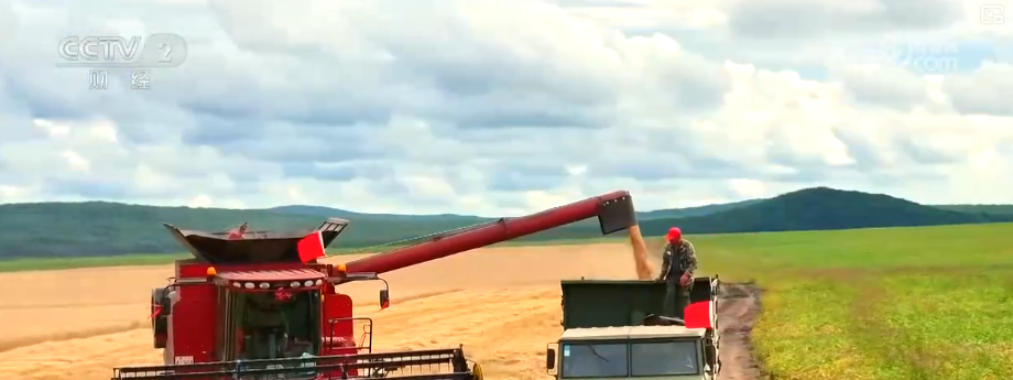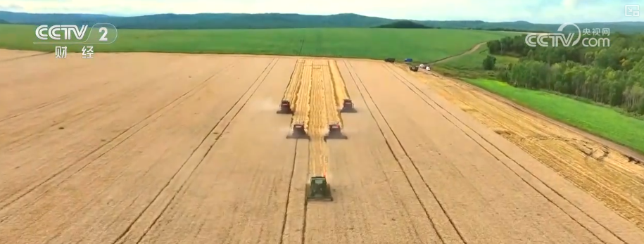 走進嫩江市塔溪鄉(xiāng)的小麥種植區(qū),數(shù)臺聯(lián)合收割機在田間穿梭,將成熟的麥穗卷入機身。飽滿的麥粒從卸糧口傾瀉而下,裝載到運糧車里。
