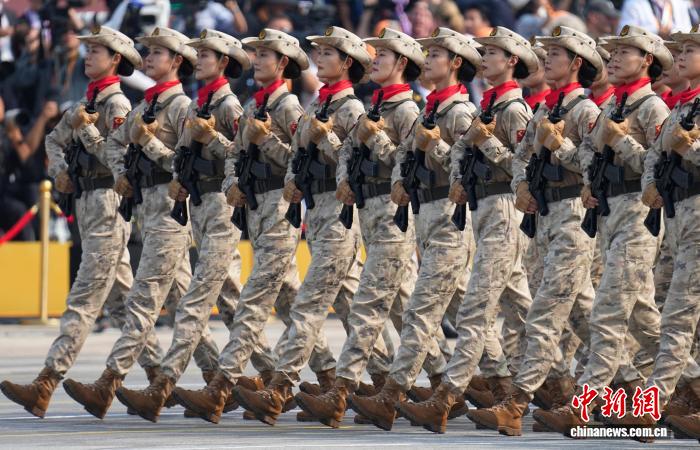 9月3日,紀(jì)念中國人民抗日戰(zhàn)爭暨世界反法西斯戰(zhàn)爭勝利80周年大會在北京隆重舉行。圖為民兵方隊接受檢閱。該方隊全部由女民兵組成,這是民兵首次亮相以紀(jì)念抗戰(zhàn)勝利為主題的閱兵活動?!≈行戮W(wǎng)記者 趙文宇 攝