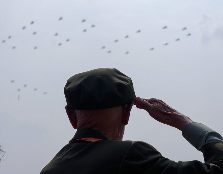 2025年9月3日,紀(jì)念中國人民抗日戰(zhàn)爭暨世界反法西斯戰(zhàn)爭勝利80周年大會在北京隆重舉行。這是抗戰(zhàn)老戰(zhàn)士在天安門城樓上敬禮。新華社記者 才揚(yáng) 攝
