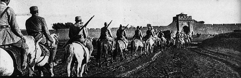 1945年8月,中國抗日武裝力量向日軍發(fā)起全面反攻。圖為八路軍晉綏部隊(duì)解放興和城,騎兵部隊(duì)列隊(duì)進(jìn)城。新華社發(fā)